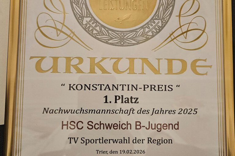 Nachdem sich die weibliche B-Jugend der HSC Schweich souverän in den Qualifikationsspielen durchgesetzt hatte, nahm die Mannschaft an einem international besetzten Turnier an Pfingsten in Diekirch (Luxemburg) teil und wurde dort Turniersieger. Es folgte eine dreiwöchige Pause.